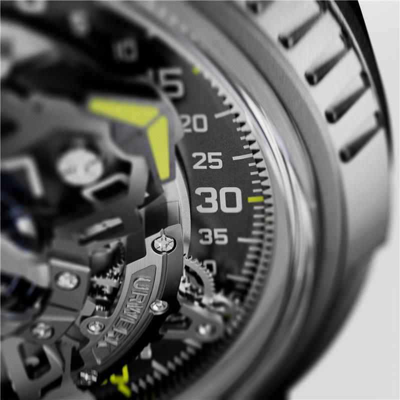 – A futuristic 44mm sandblasted titanium case inspired by the Freak [ONE] and infused with URWERK DNA.